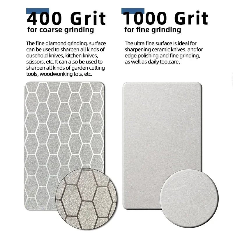 【فعال ومتين】حجر الشحذ (400#/1000#) مصنوع من الماس المطلي بالتيتانيوم عالي الصلابة. المادة لا تتآكل تقريبًا، وحجر الشحذ له عمر خدمة طويل، وتصميم مقعر محدب على شكل قرص العسل يضمن أن الغبار الناتج أثناء عملية الطحن لن يؤثر على الشحذ، وبالتالي تسريع عملية الشحذ، وتوفير وقتك الثمين.