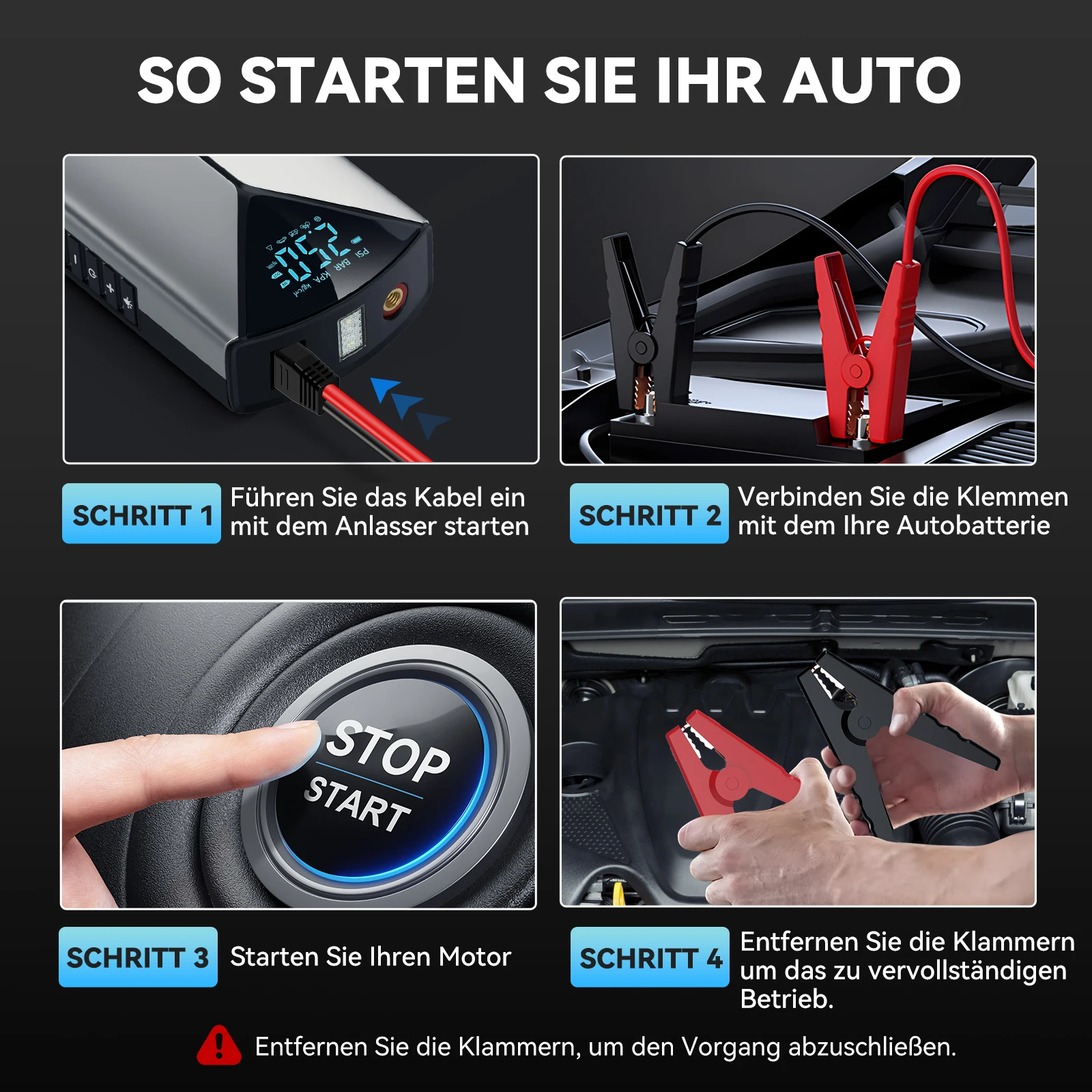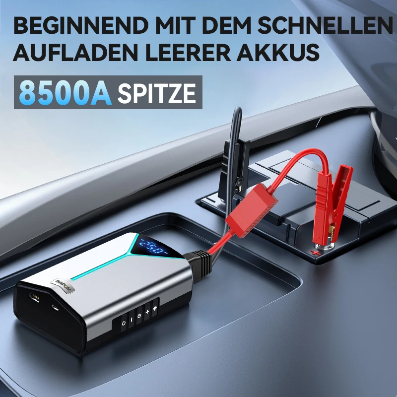 بطارية تشغيل السيارة الليثيومية بقدرة 5000 أمبير مناسبة لمحركات البنزين حتى 10 لترات أو محركات الديزل حتى 8 لترات، مزودة بإضاءة LED.