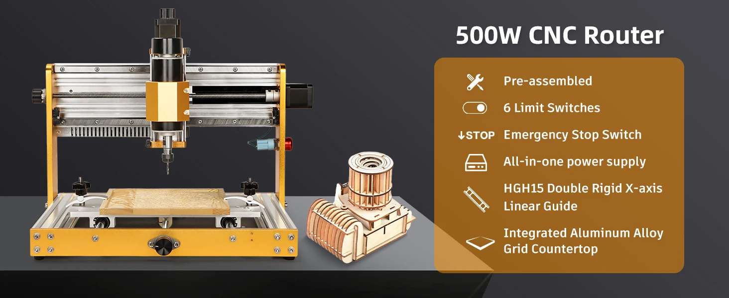 ماكينة توجيه CNC 3018Pro Ultra مزودة بمغزل 500 واط لنحت الخشب والمعادن والأكريليك وMDF، ماكينة طحن وقطع ثلاثية المحاور