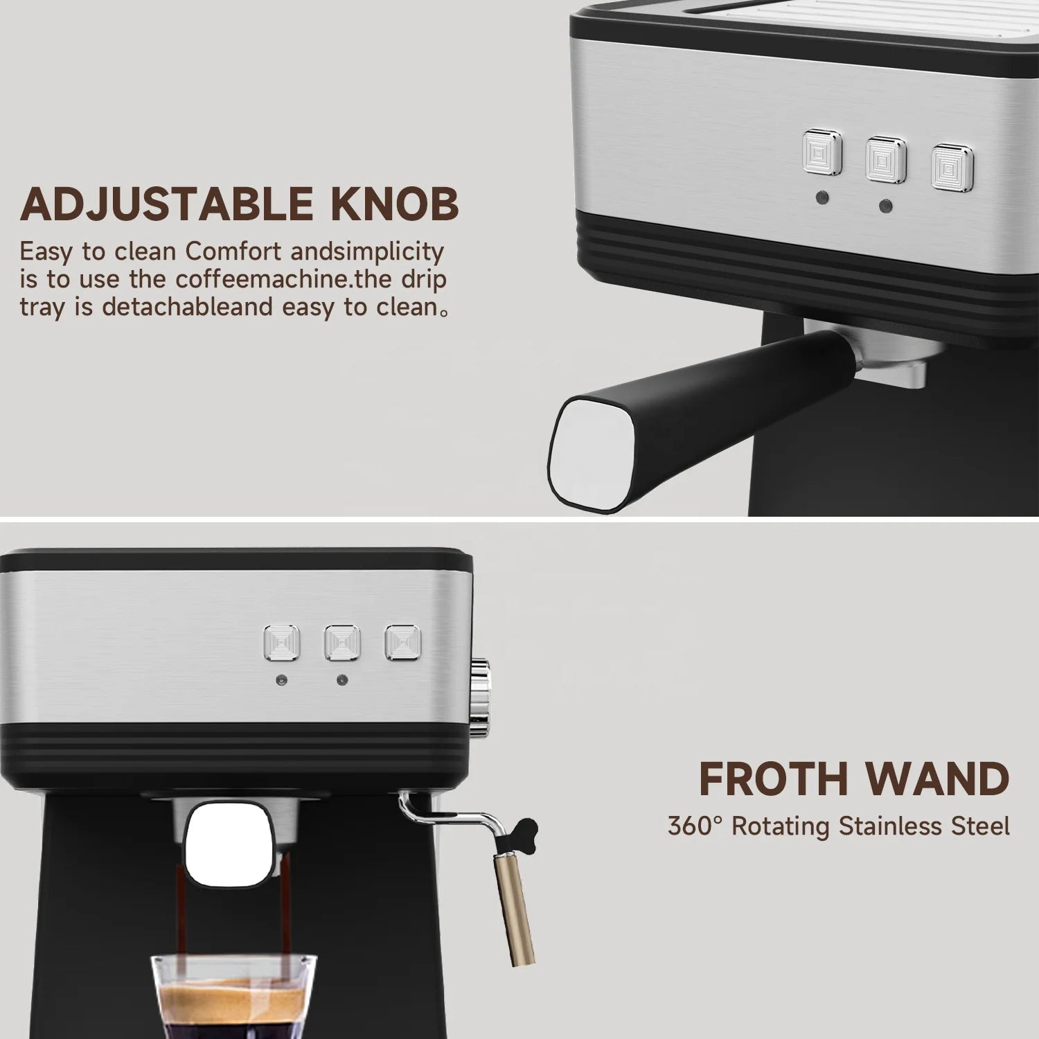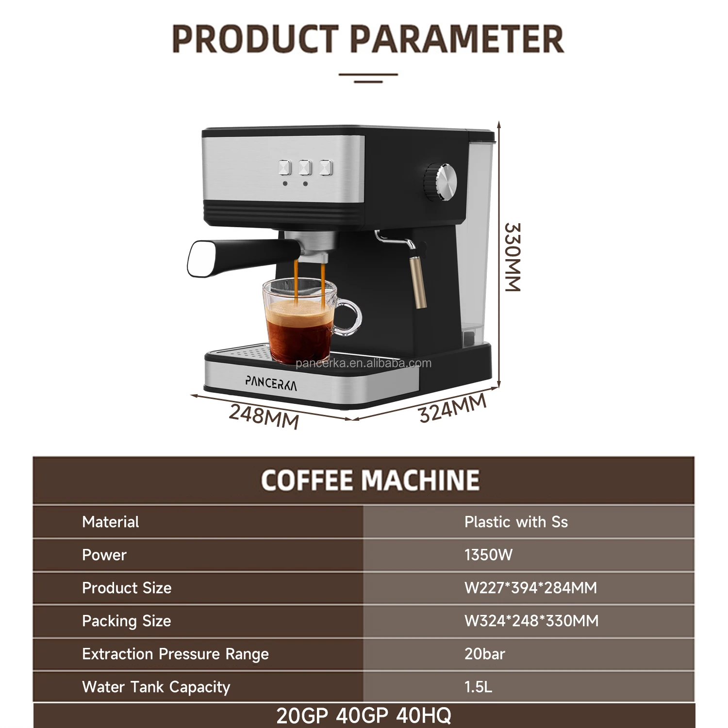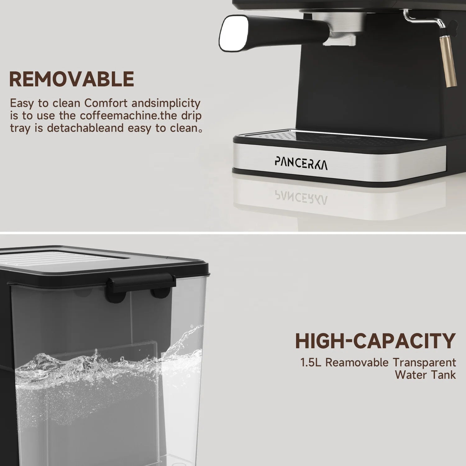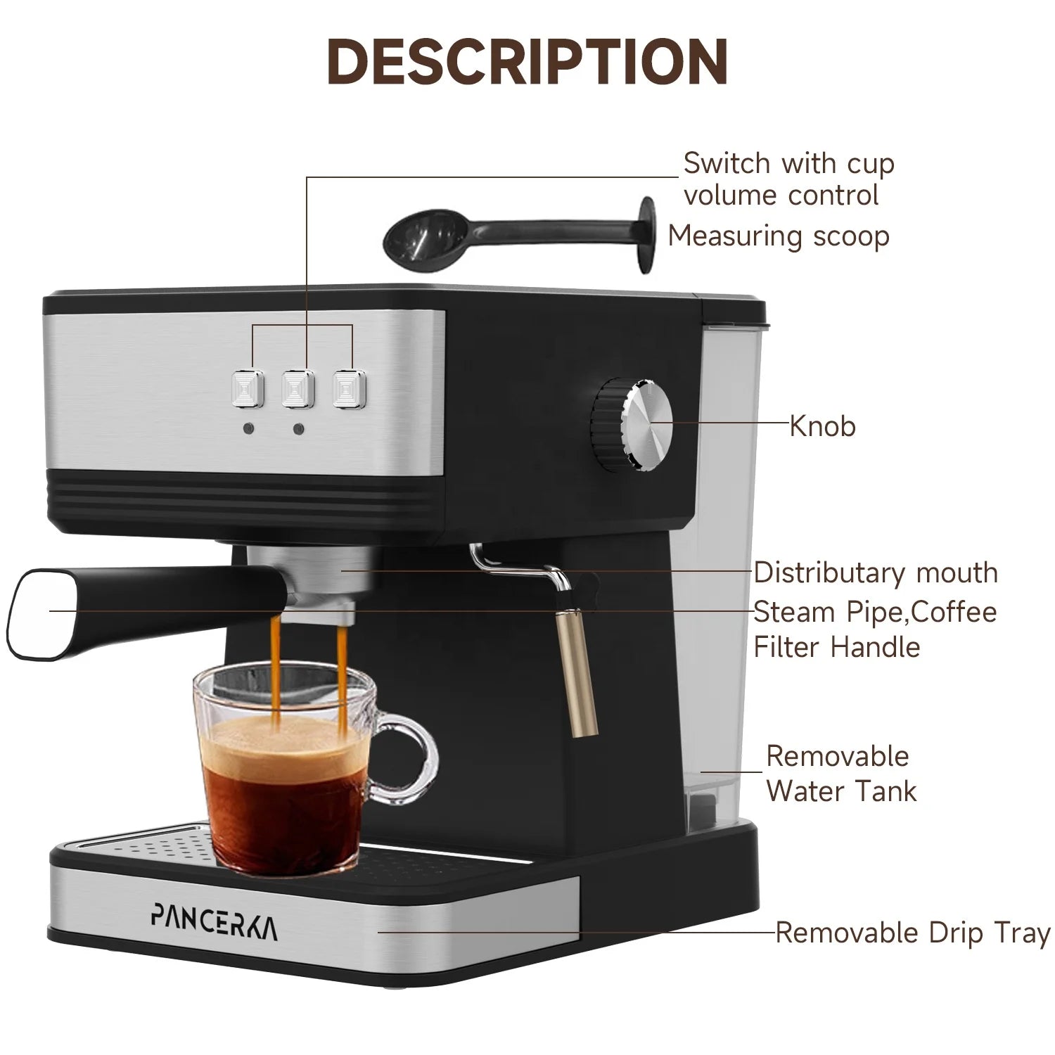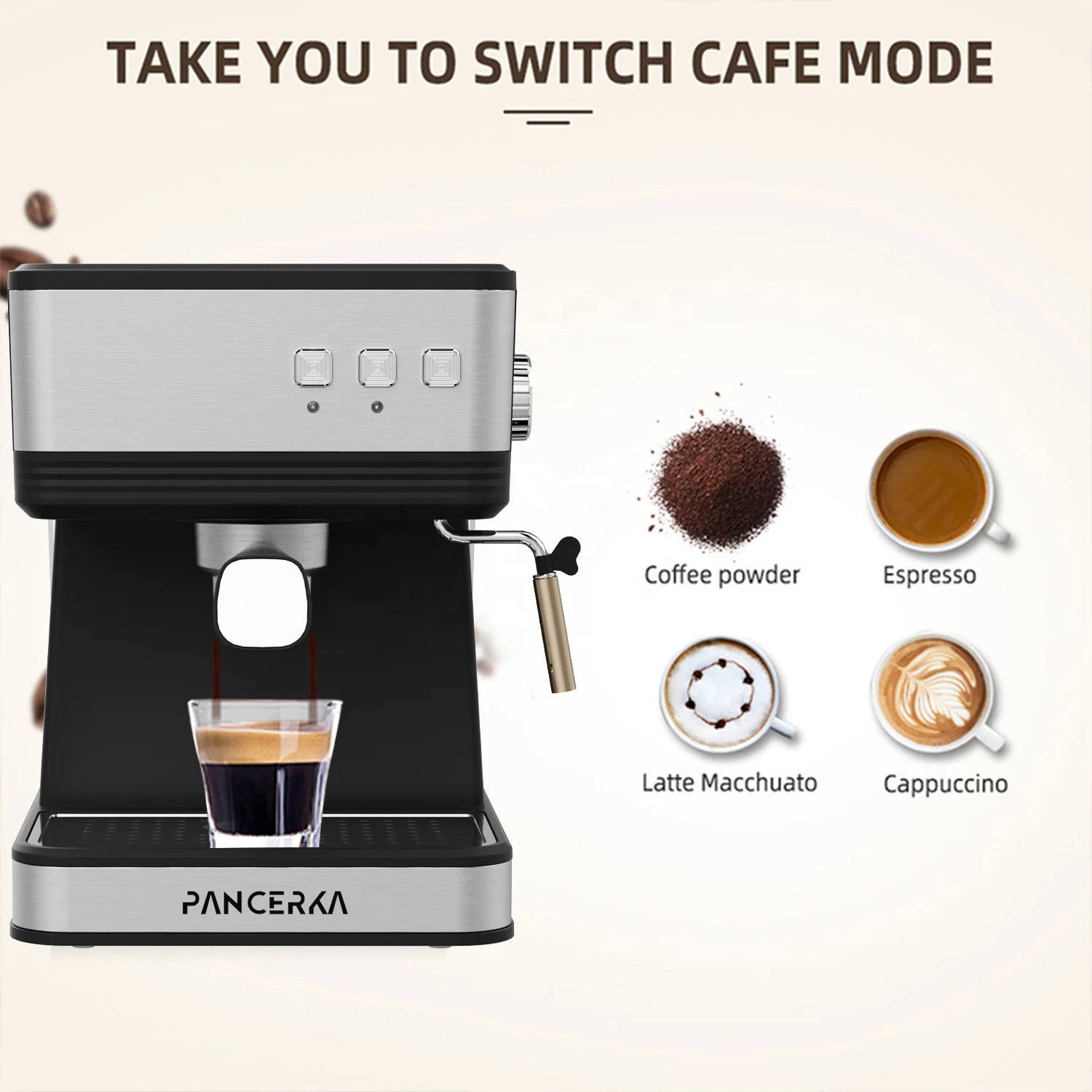بانسيركا، منتج جديد 2 في 1، ماكينة إسبريسو منزلية عالية الضغط 19 بار، مصنوعة من المعدن، ماكينة قهوة تجارية مع رغوة الحليب