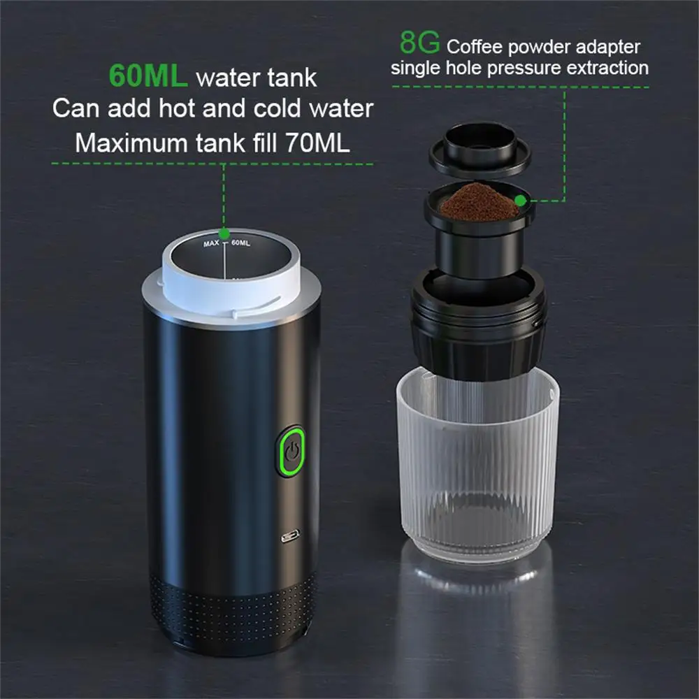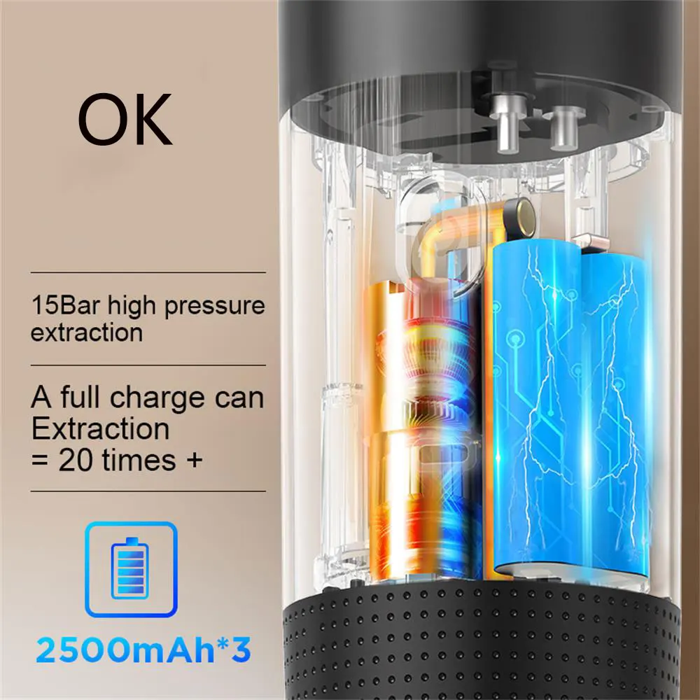 ماكينة قهوة محمولة تعمل بالكبسولات، ماكينة قهوة إيطالية مركزة تعمل بالكهرباء، صغيرة الحجم، لاسلكية، بمضخة تسخين، تعمل بالضغط.