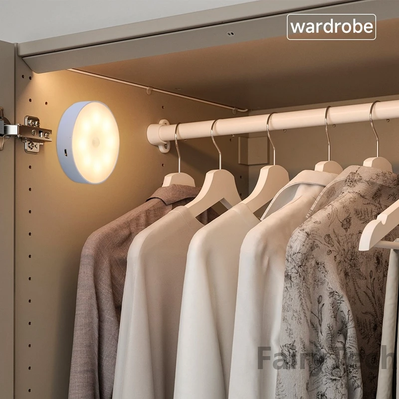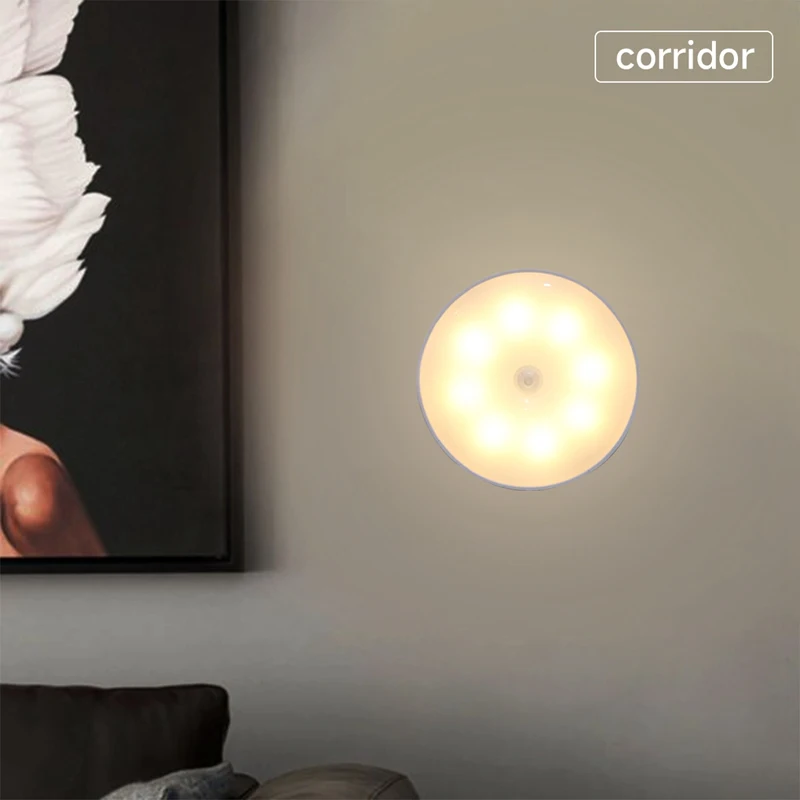 Motion Sensor Light Led USB NightLights Round Chargeable Lamp for Bedroom Kitchen Stair Hallway Wardrobe Cupboard Lighting
