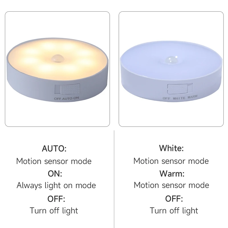 Motion Sensor Light Led USB NightLights Round Chargeable Lamp for Kids Bedroom Kitchen Stair Hallway Wardrobe Cupboard Lighting