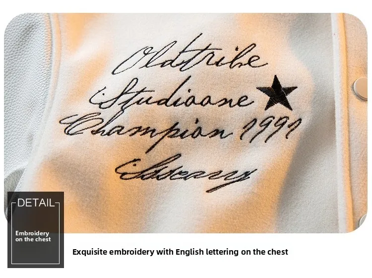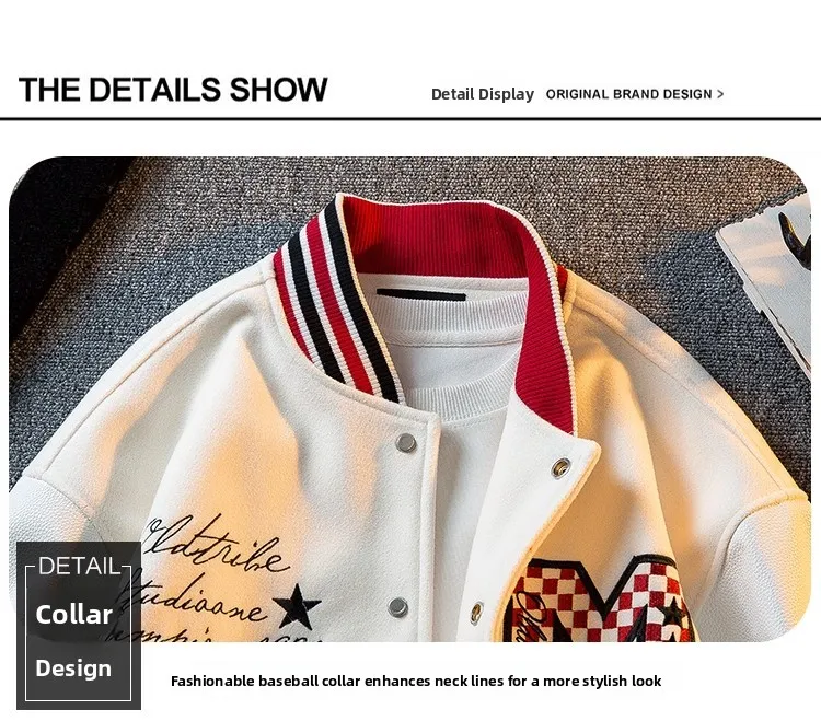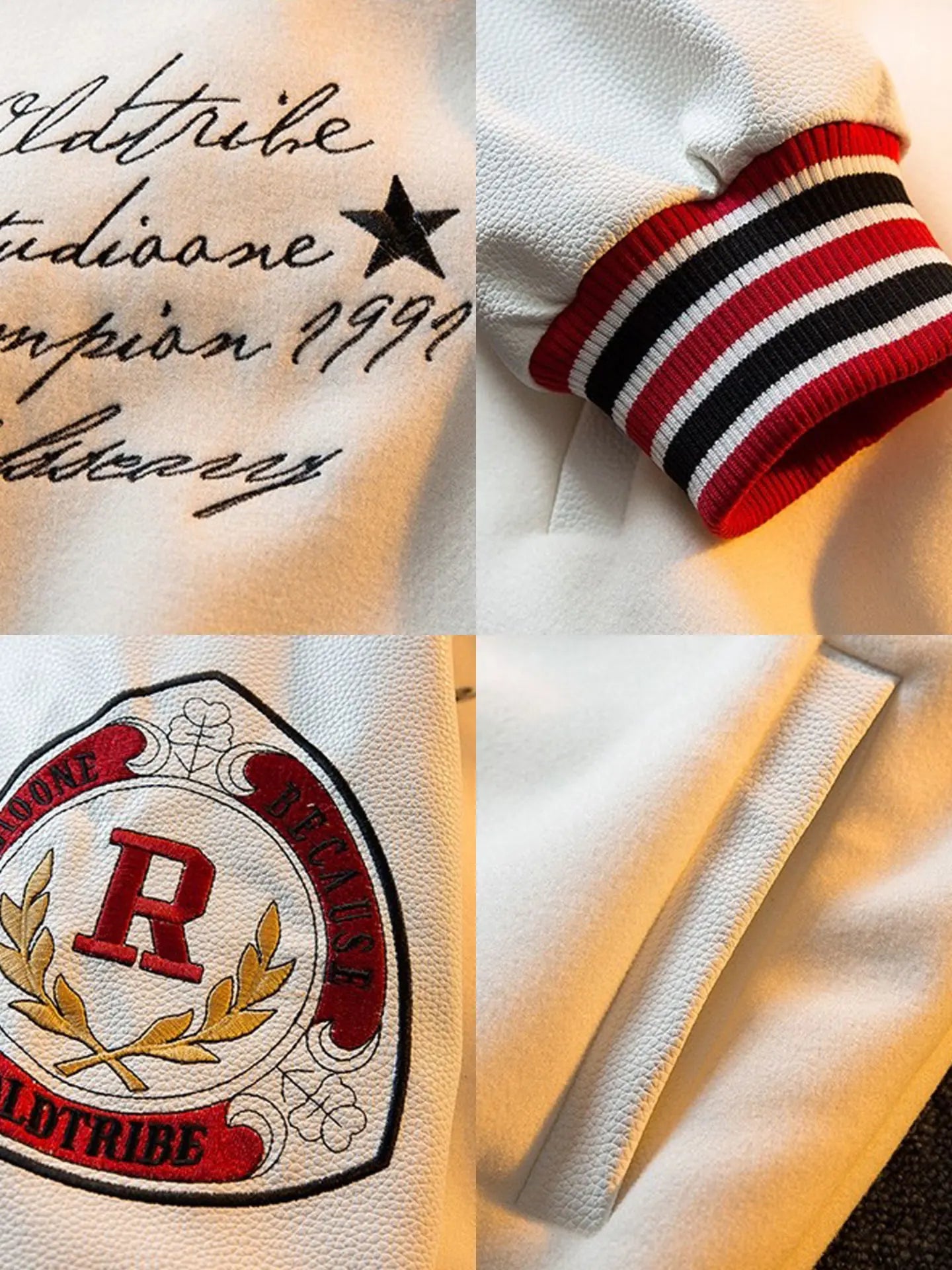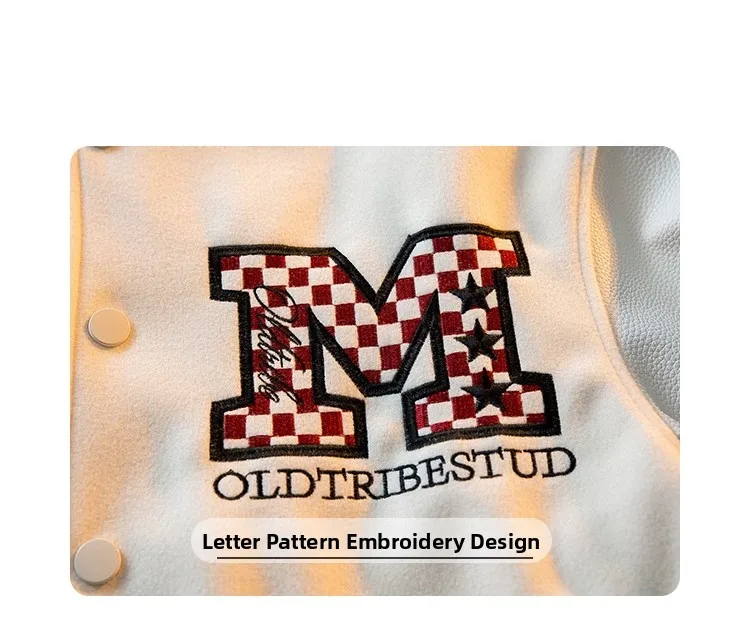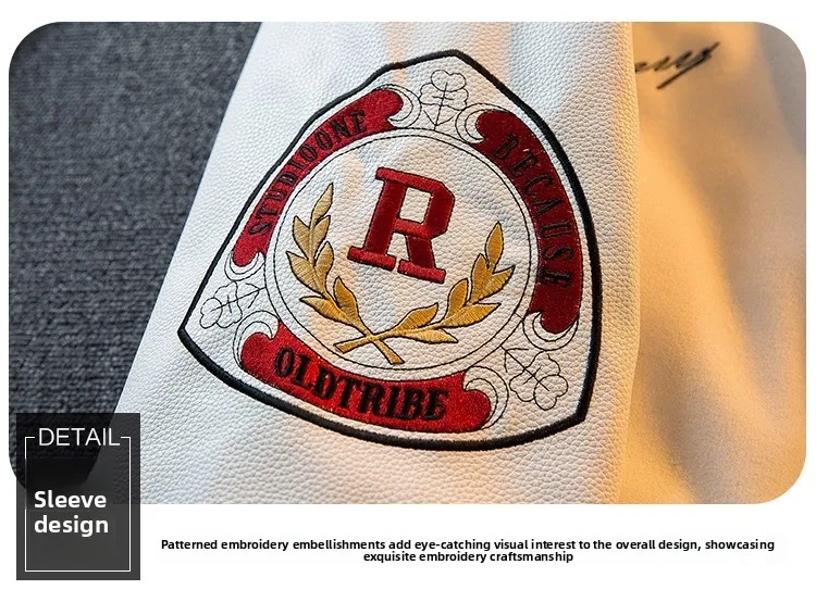 MUSONMU American Sle Embroidered Baseball Jaet Men's Loose Woolen Outerwear Casual Leather Coat for Autumn And Winter