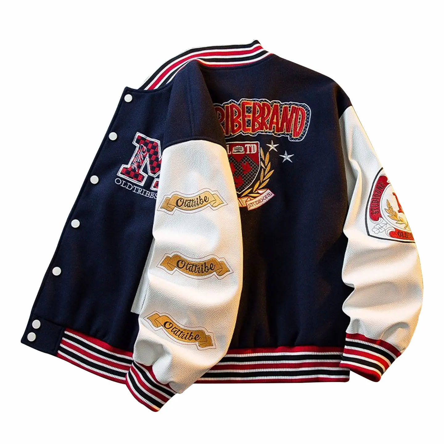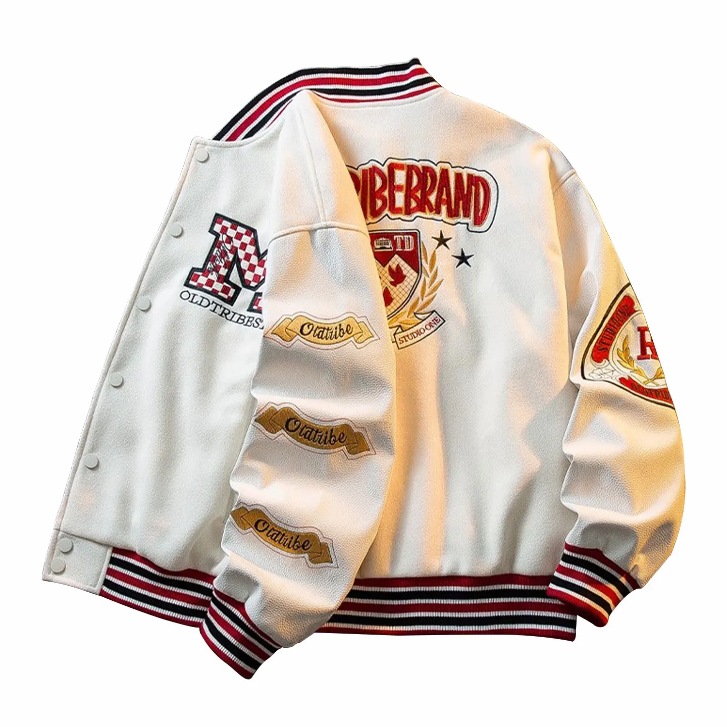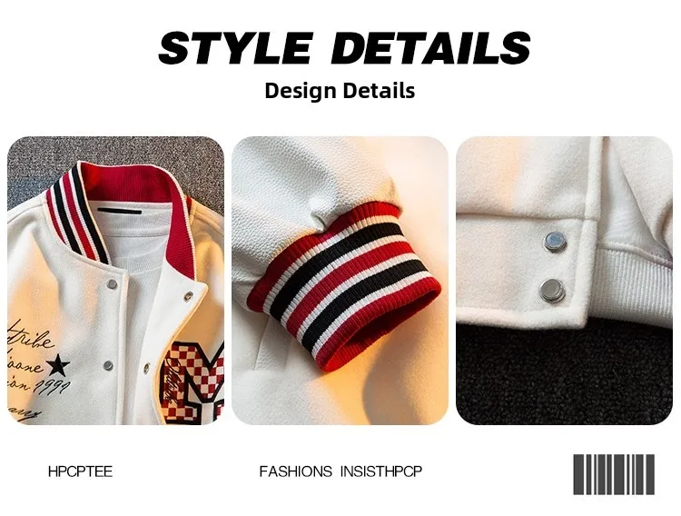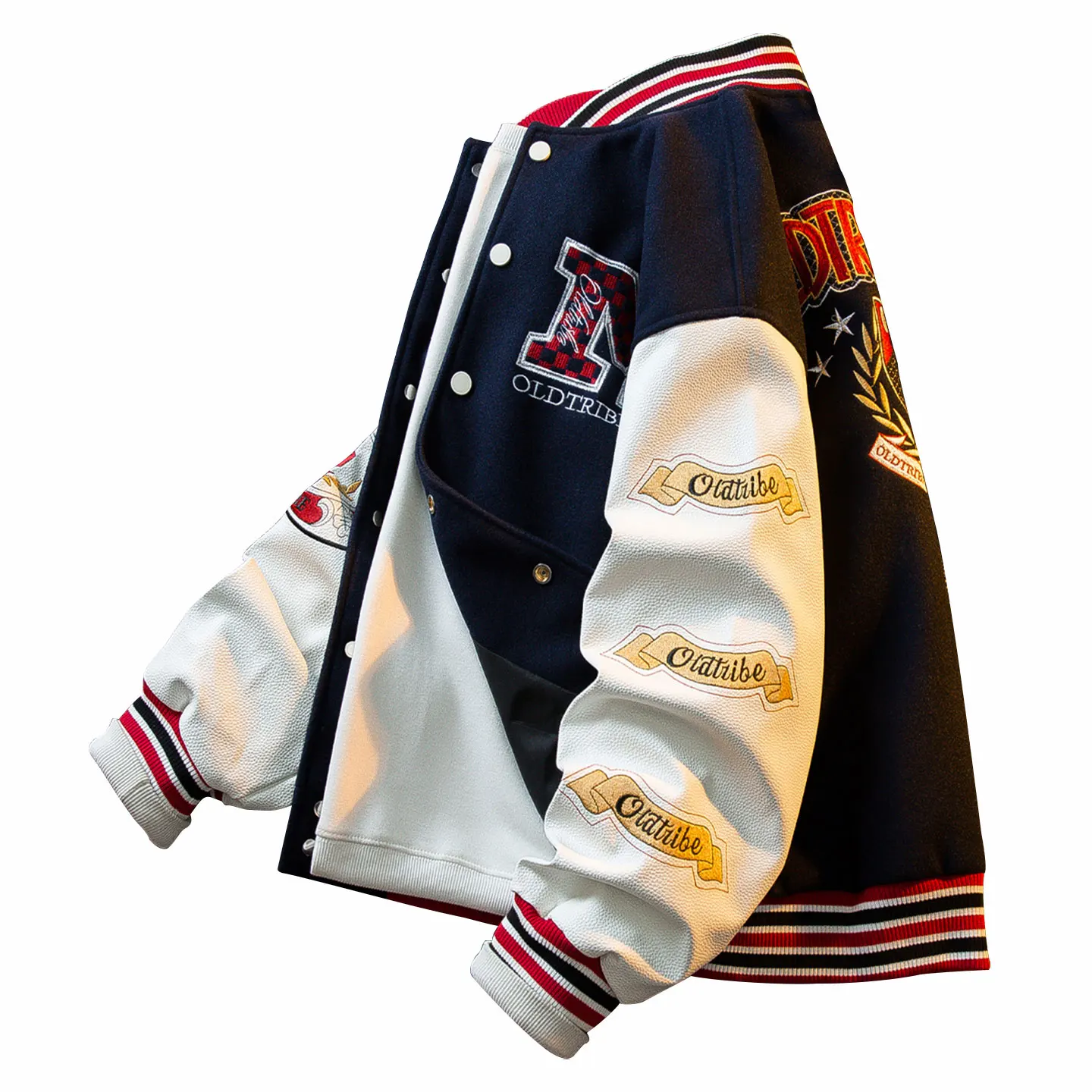 MUSONMU American Sle Embroidered Baseball Jaet Men's Loose Woolen Outerwear Casual Leather Coat for Autumn And Winter
