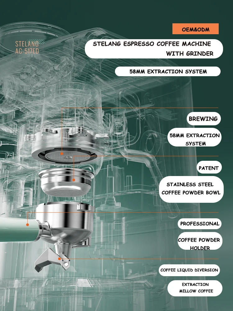 Factory Price Wholesale Semi Auto Cappuccino and Espresso Coffee Machines Makers with Grinder Accessories