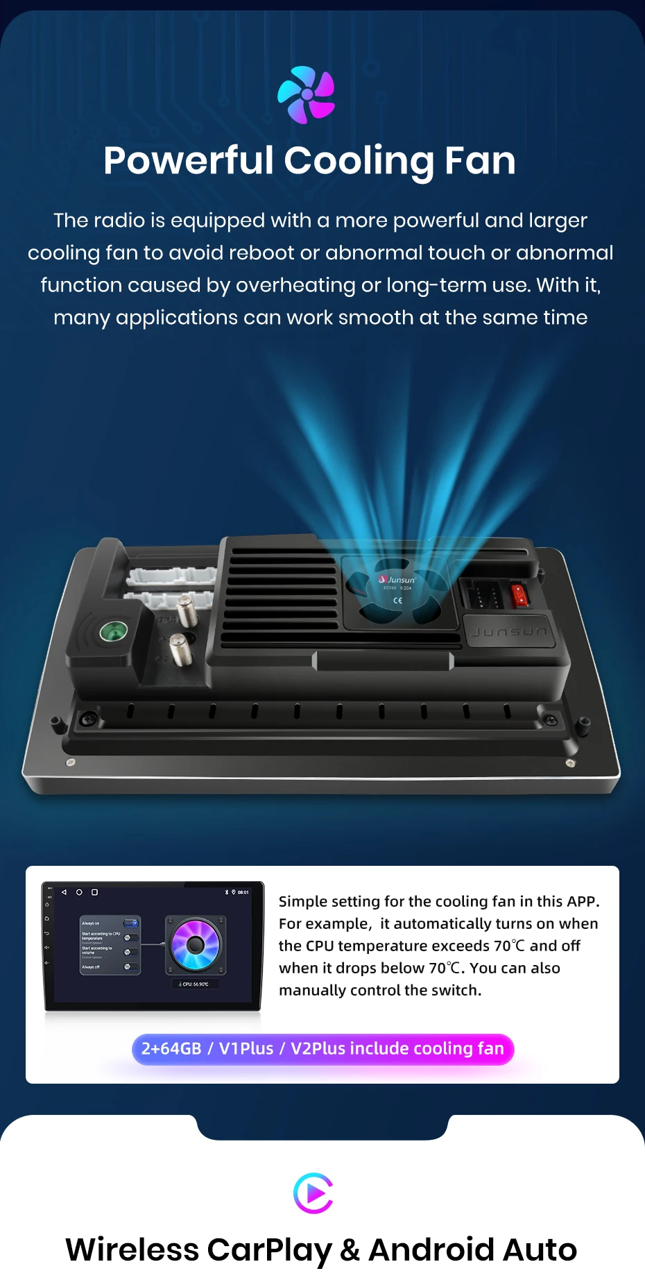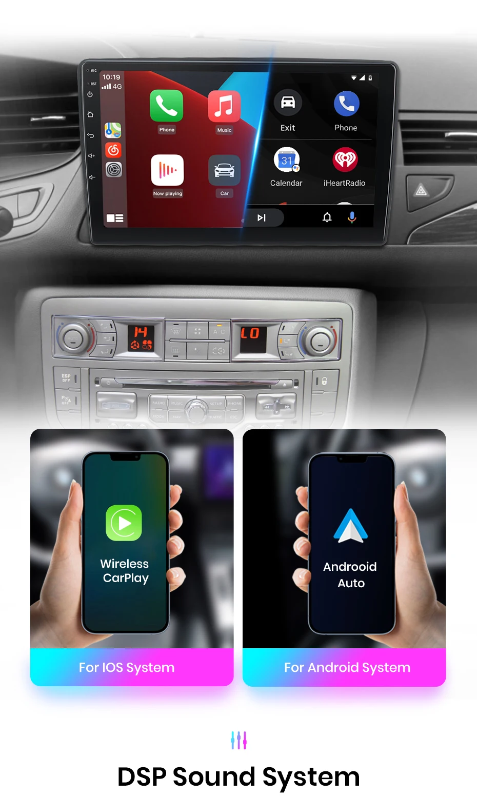 >>The Junsun radio supports Wireless CarPlay and Android Auto, allowing you to use smartphone functions and applications such as navigation, music, calls, and messaging during your journey. It provides a high-quality audio experience, enhancing the entertainment and convenience of your driving experience.