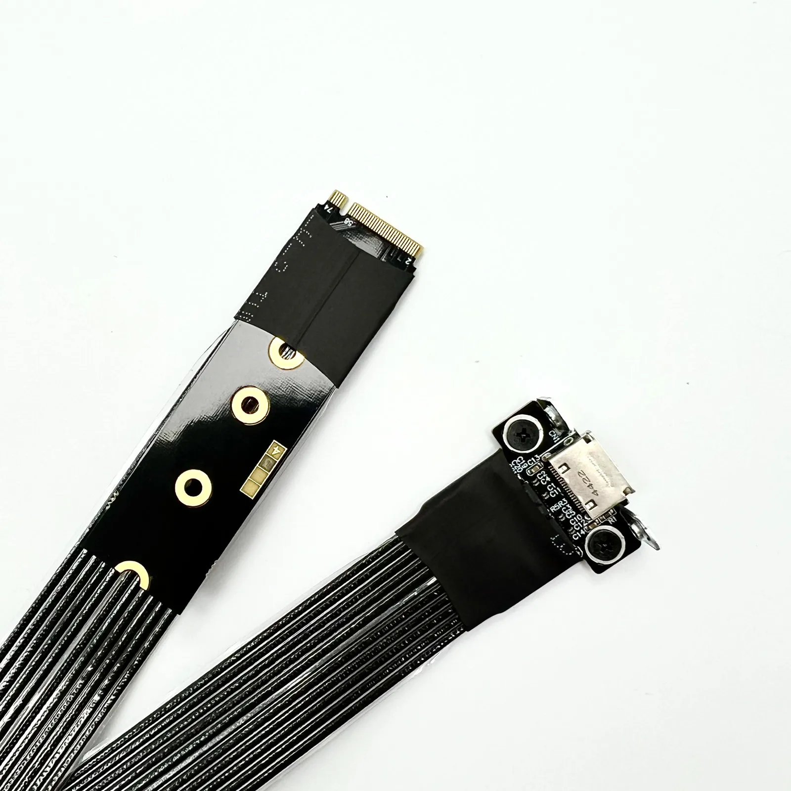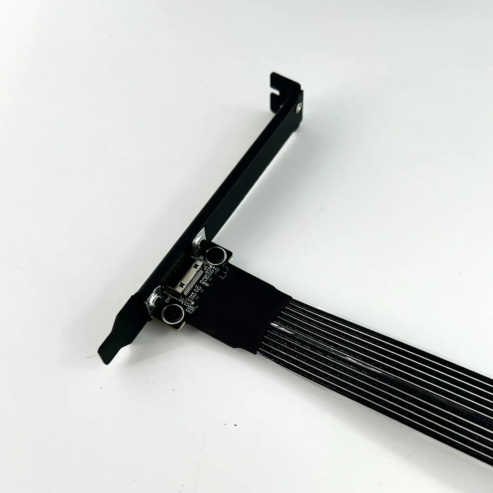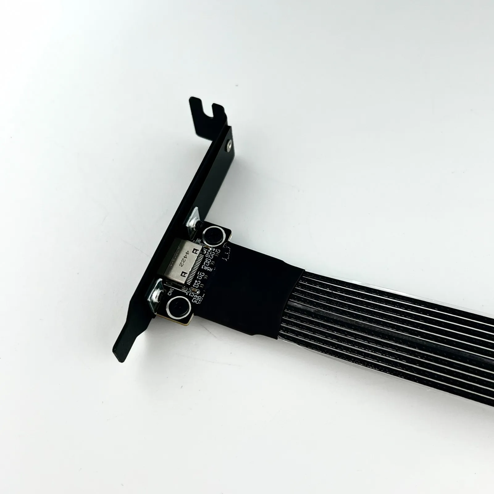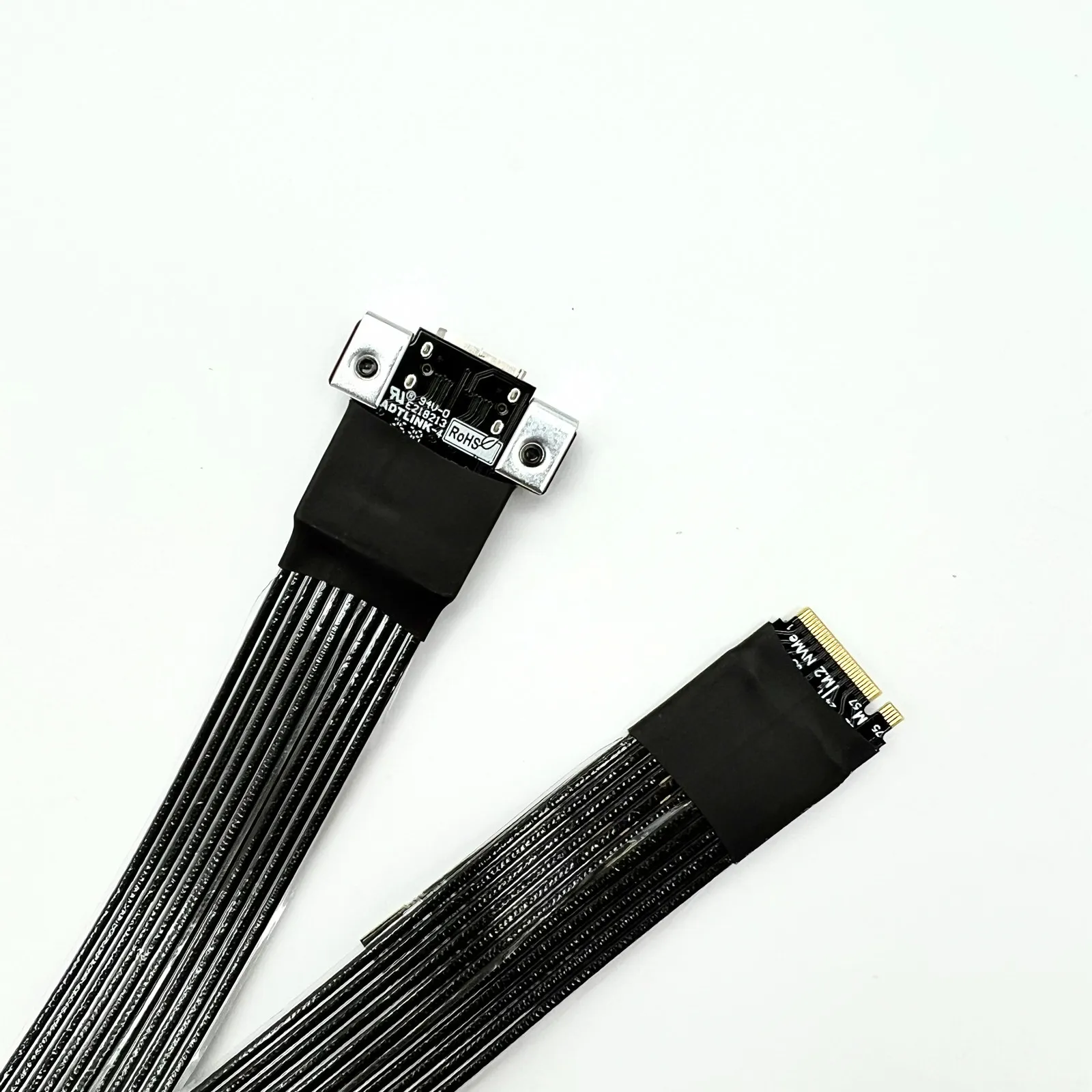 The cable is a thin black version of the fifth-generation PCIe dedicated cable independently developed by ADT, with a thickness of 0.8mm. The cable is very soft and can be bent, which does not affect its use.