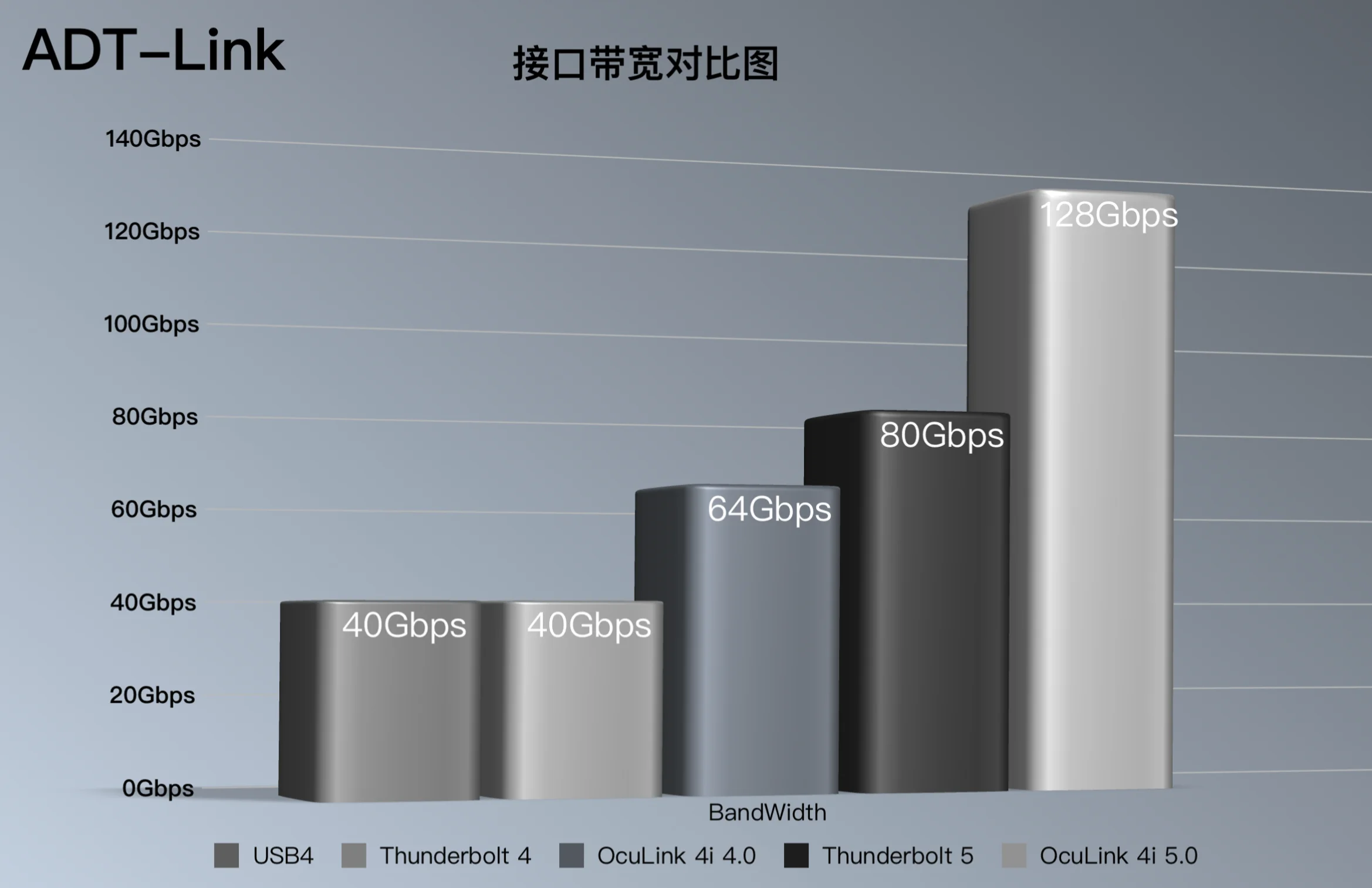 Interface advantages: Compared with the Thunderbolt external solution, the OCuLink external solution has a higher actual effective bandwidth. As it directly connects to the CPU through the PCIe channel, the performance loss is smaller. After the upgrade, OCuLink 5.0 can reach PCIe 5.0x4, with a maximum bandwidth of 128Gbps.