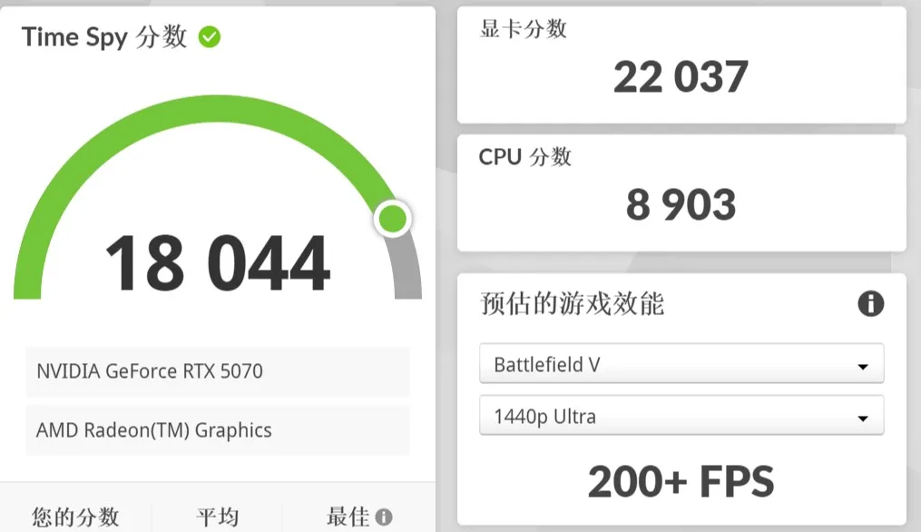 显卡坞外接5070接内屏3DMARK跑分数据