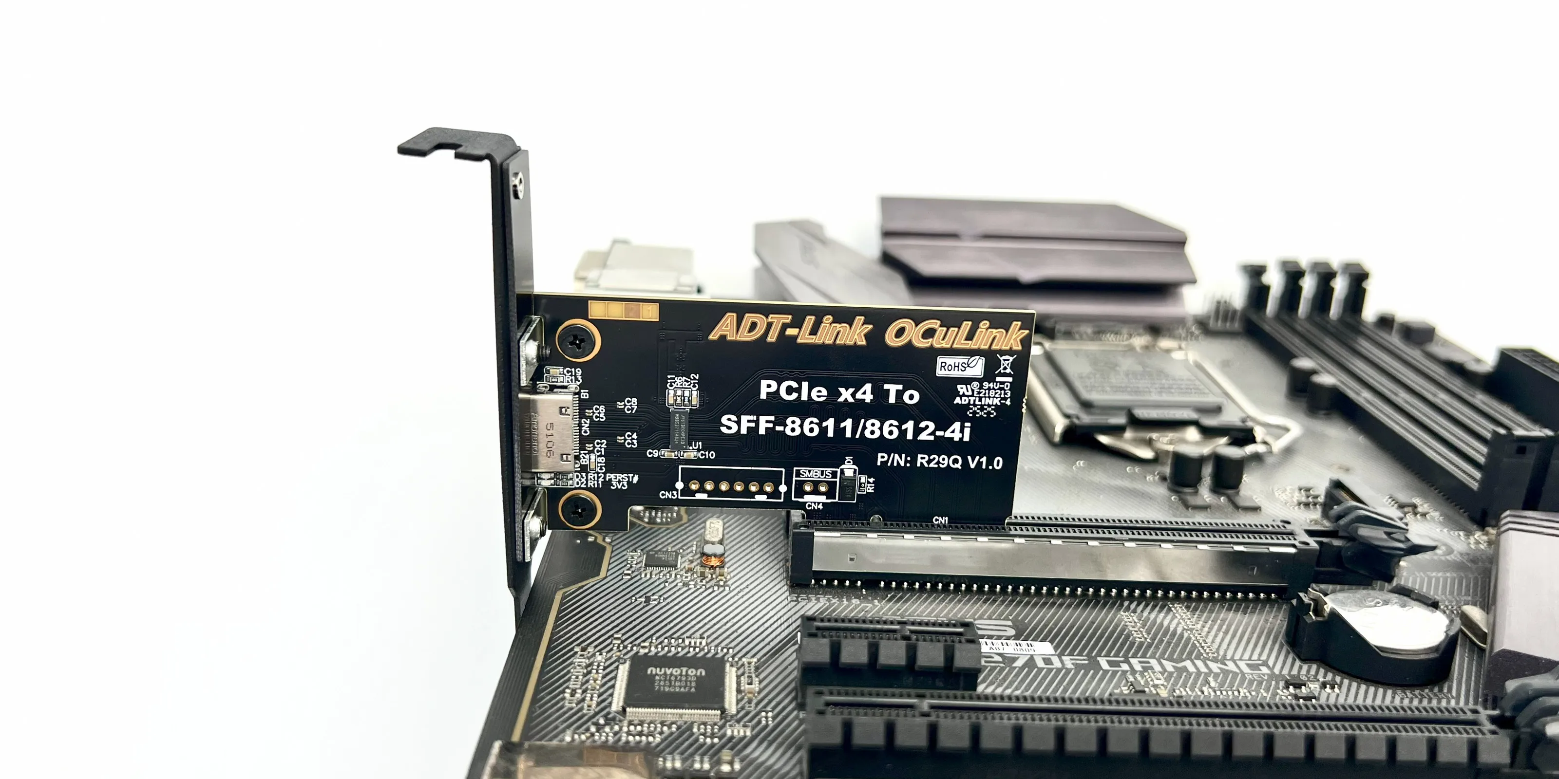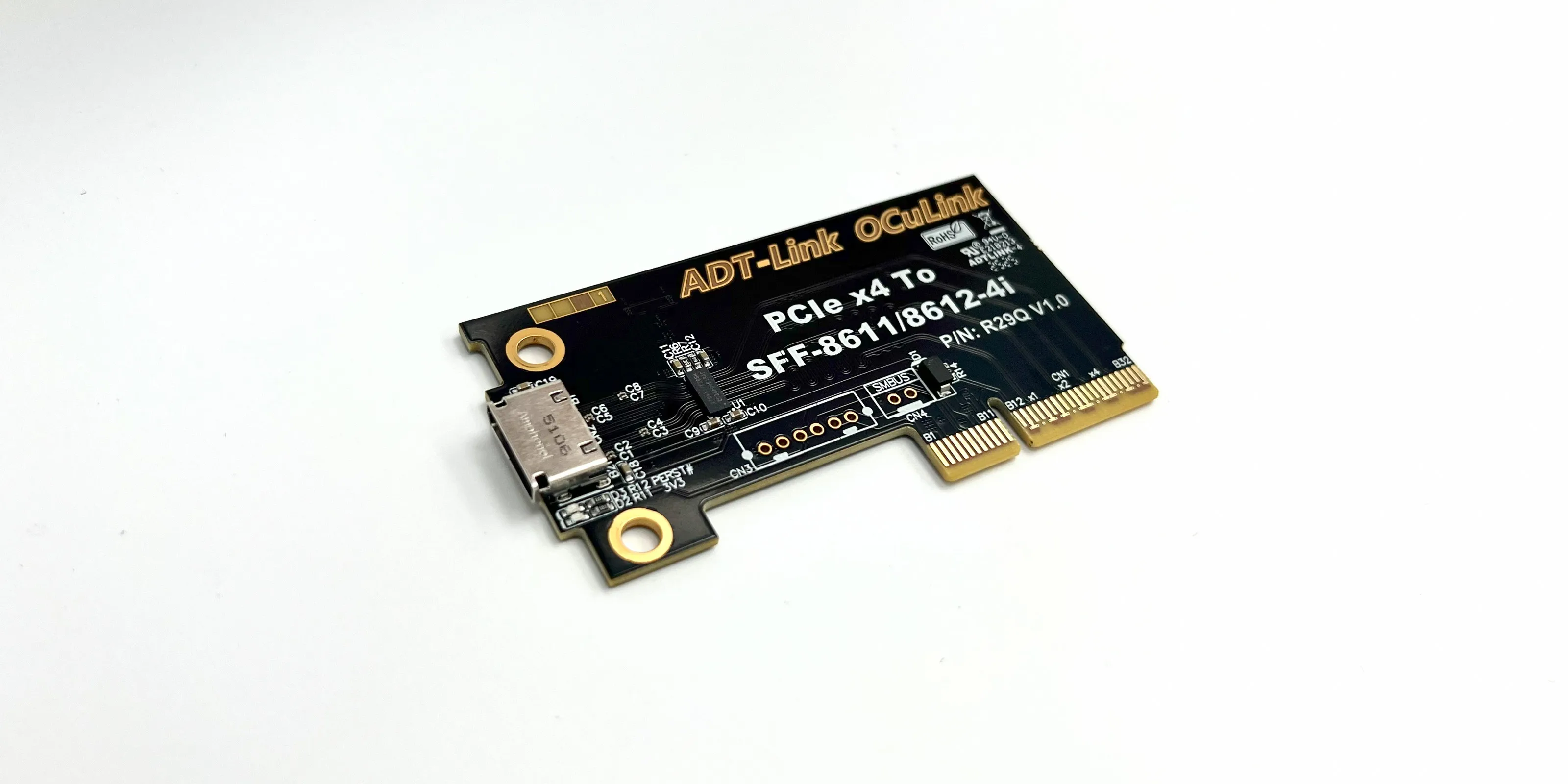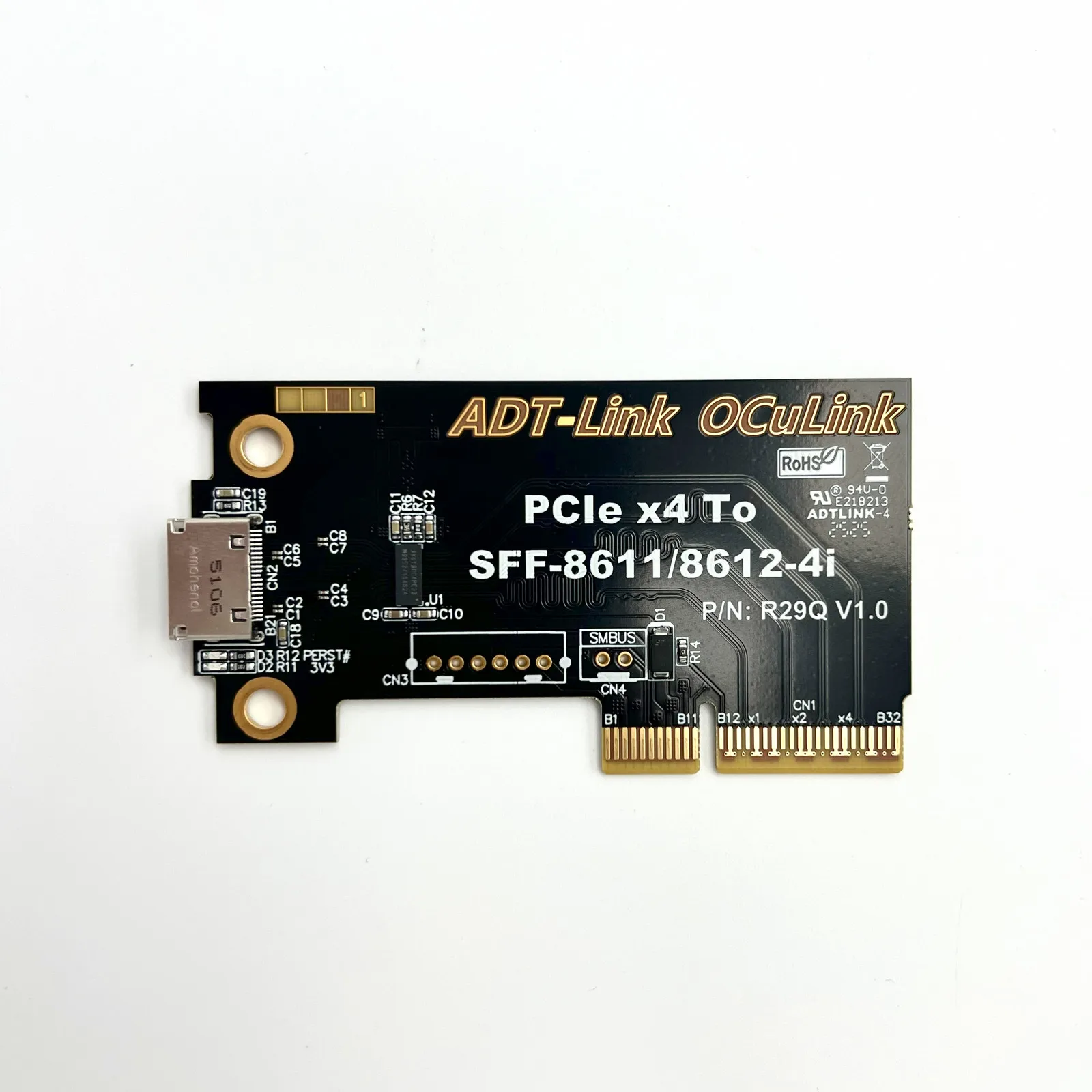 PCIe 5.0 x4 to OCuLink SFF-8612 Female with Chip |