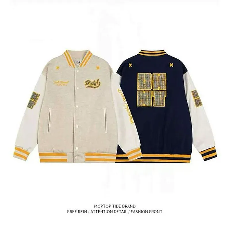 American Sle Baseball Jaet Men's Loose Fit Contrast Color Embroidery Lettering Retro Couple Match Outerwear Coat