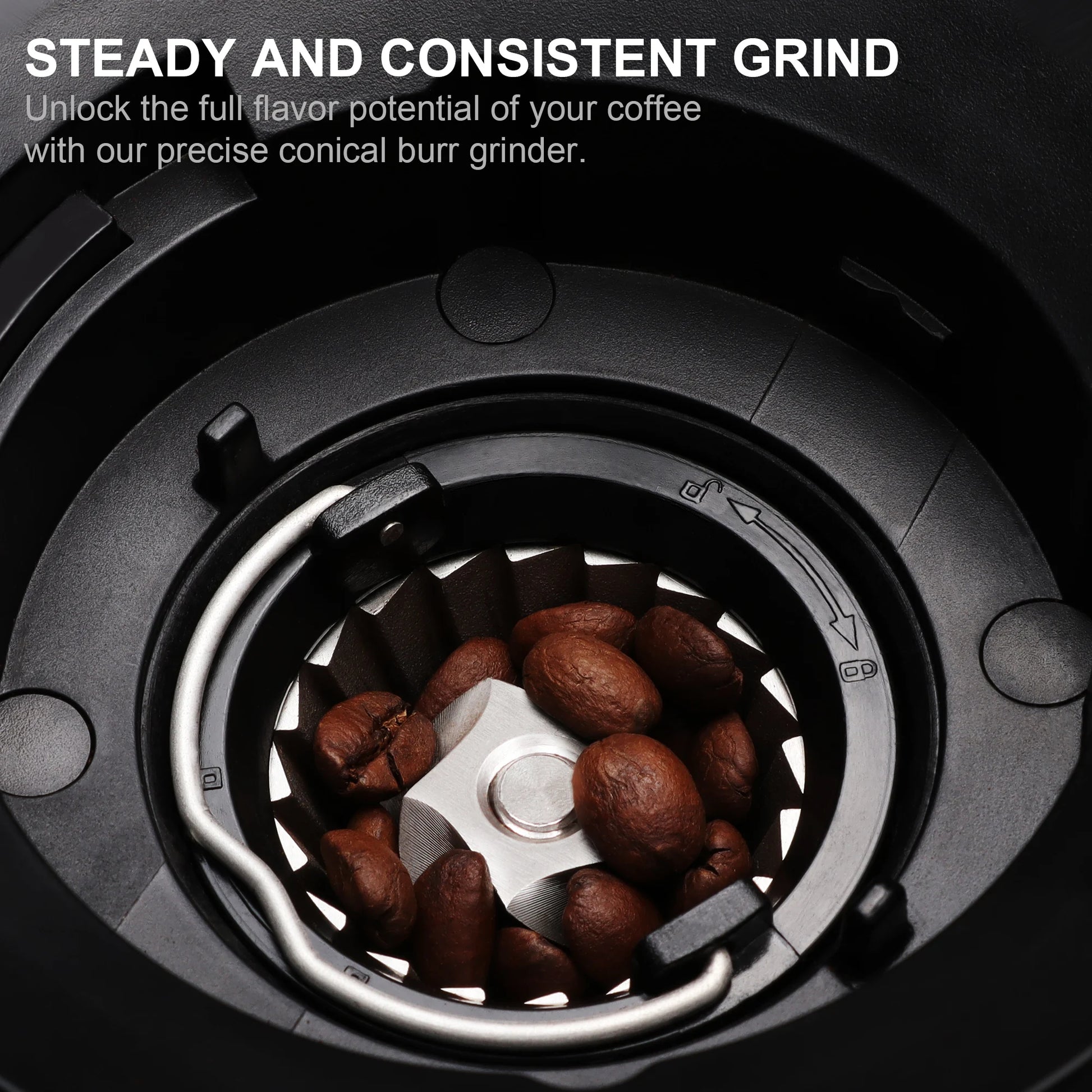 【 Durable Conical Burr 】- 40 millimeter stainless steel conical burrs designed to minimize grinding heat and protect the essential oils in the coffee bean, creating consistent coffee grounds and optimal flavor extraction.