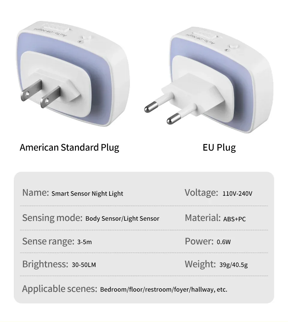 Motion Sensor Led Night Light EU US Plug Infrared Smart Sensor Wall Lamp Bedroom Toilet Hallway Kitchen Kid Nightlight 220V 110V