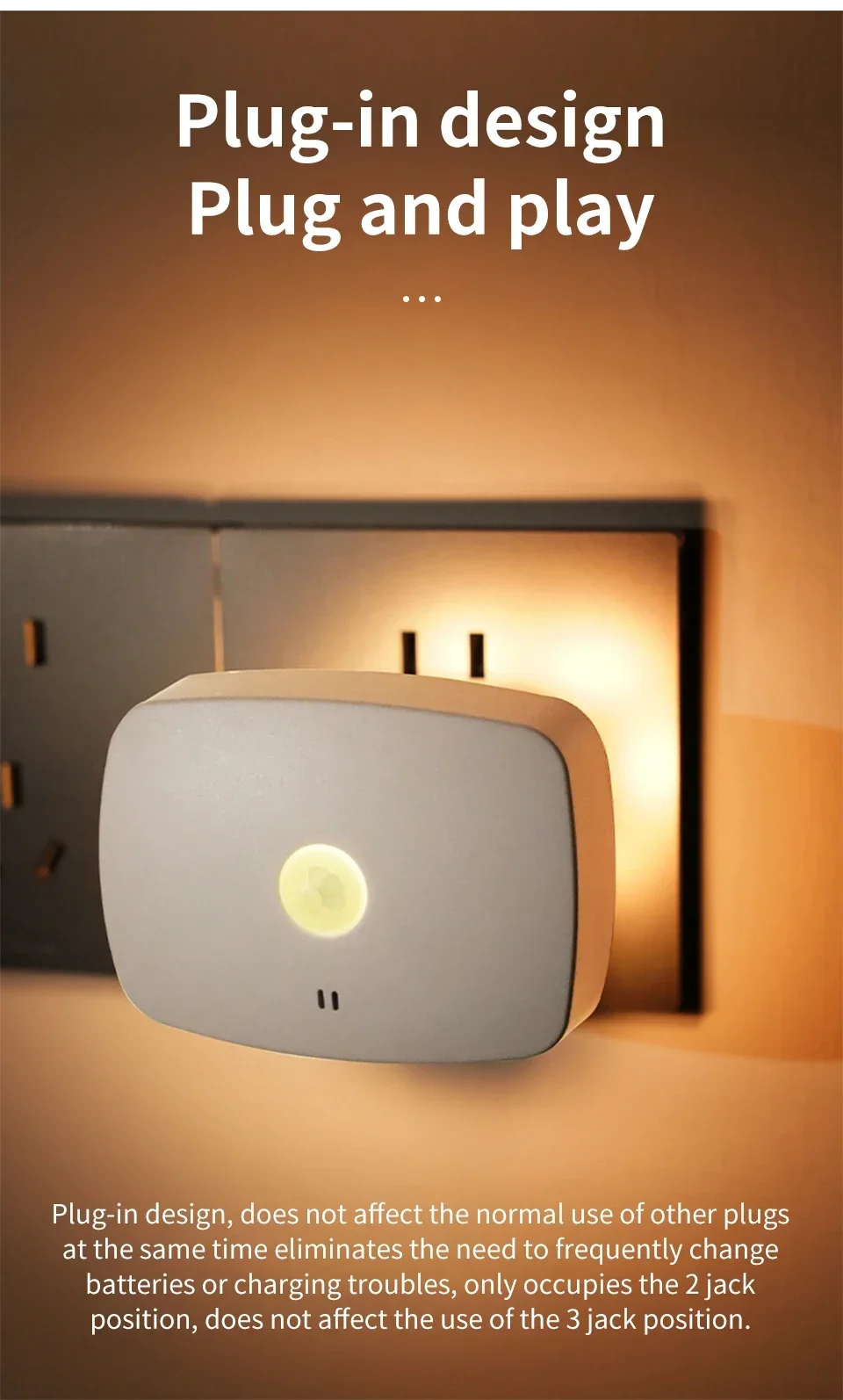 Mini and compact, does not take up space, installation-free, plug-and-play design, plug-and-play, eliminating the need to change batteries often!