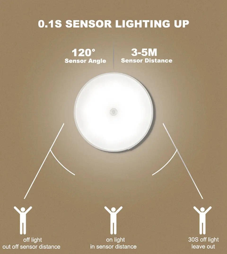 1. Motion sensor light Indoor Rechargeable will turn on automatically when you come close within 3-5M and automatically turns off 20 seconds after motion stops. Ideal for hallways, Closet Rooms, stairways, basements and many more commercial or residential applications. Get your life more convenient!